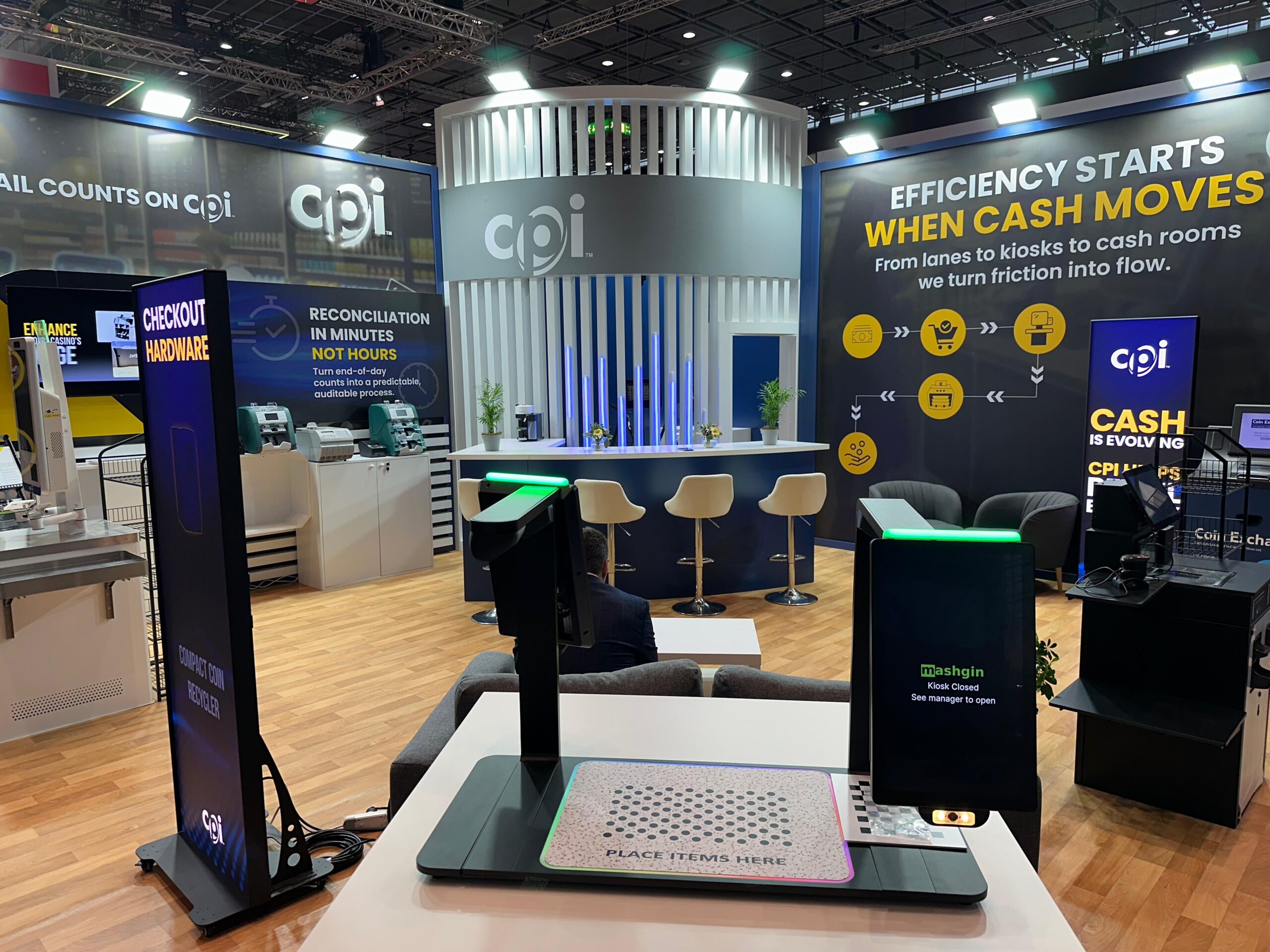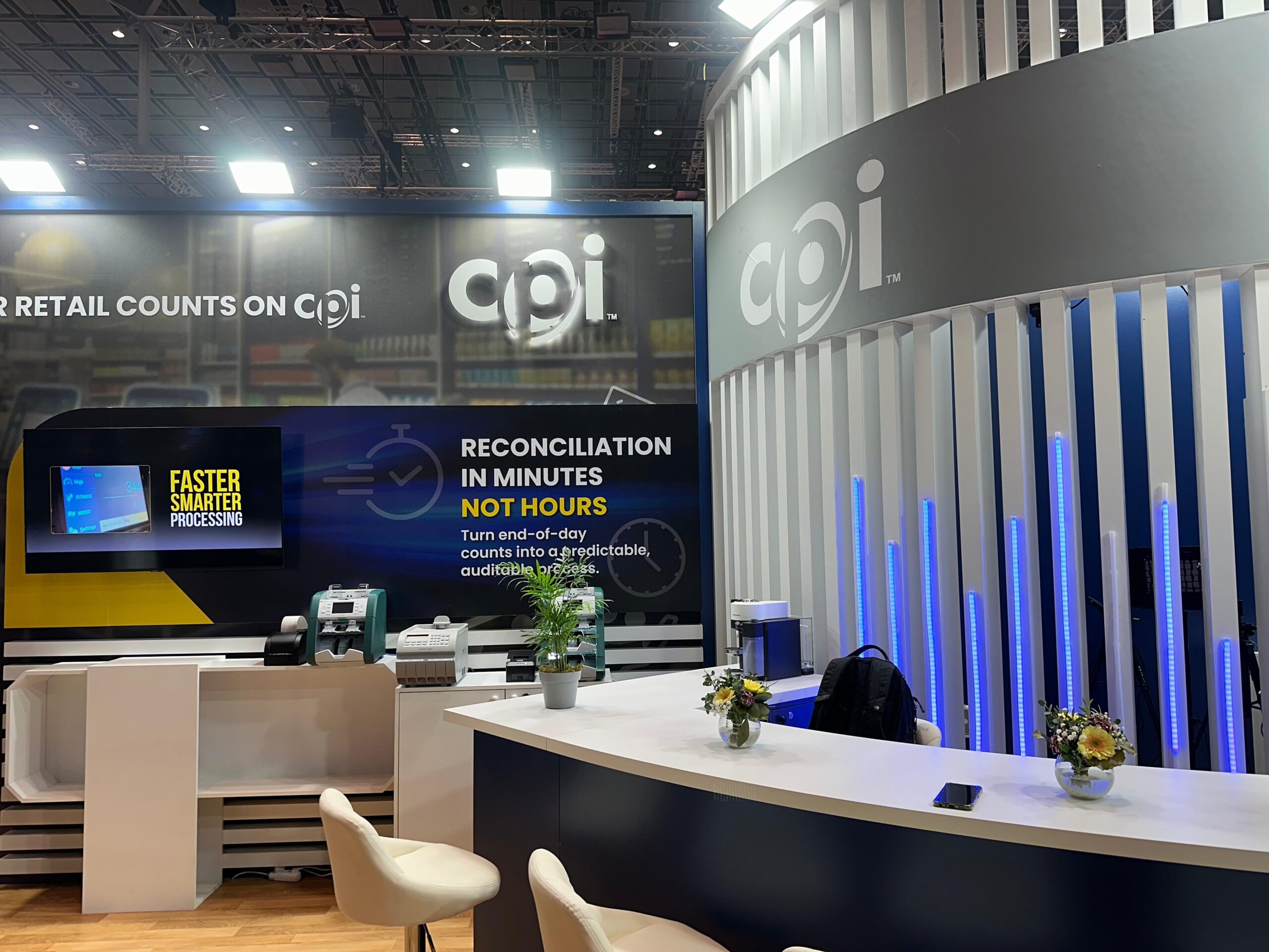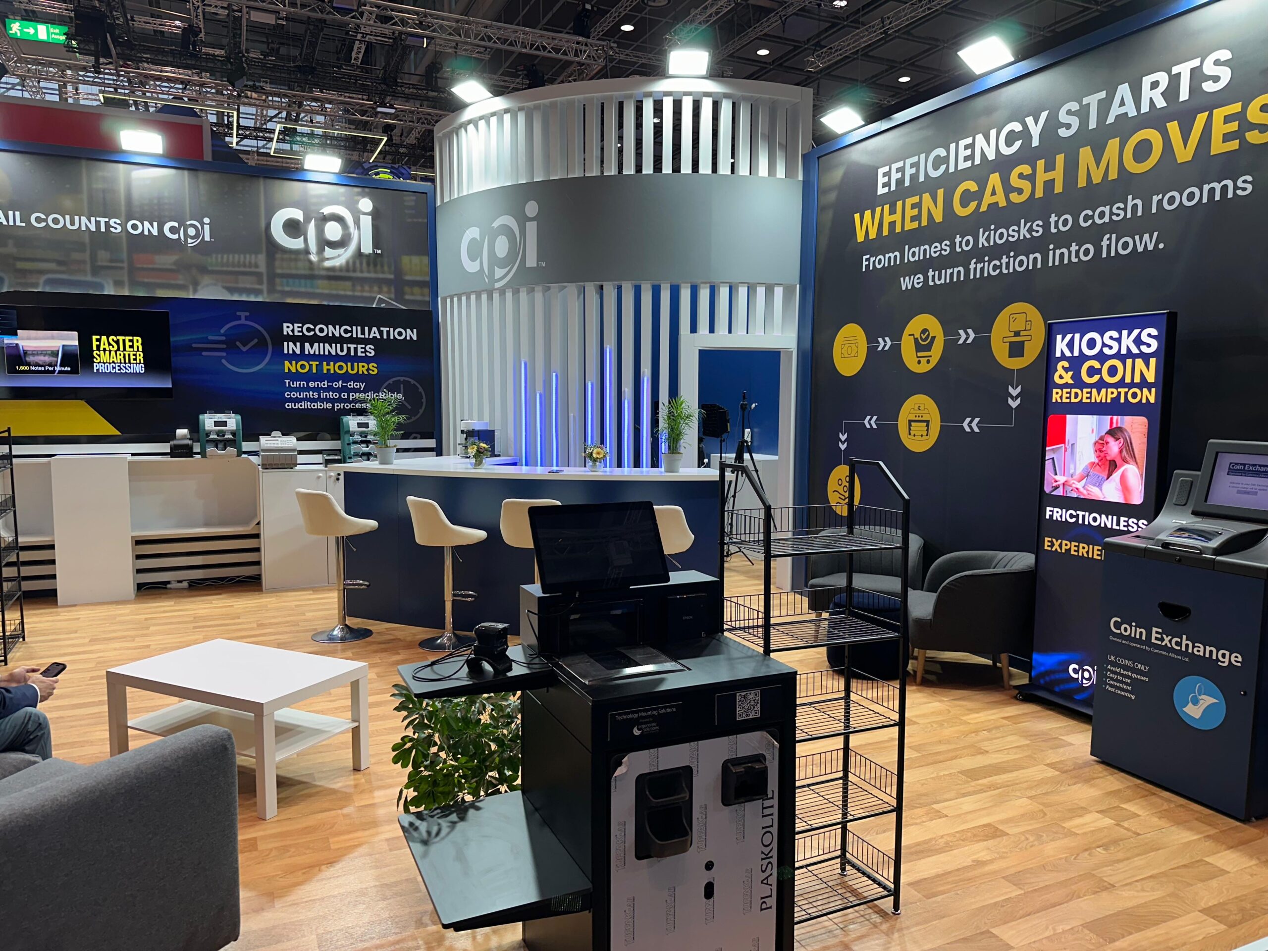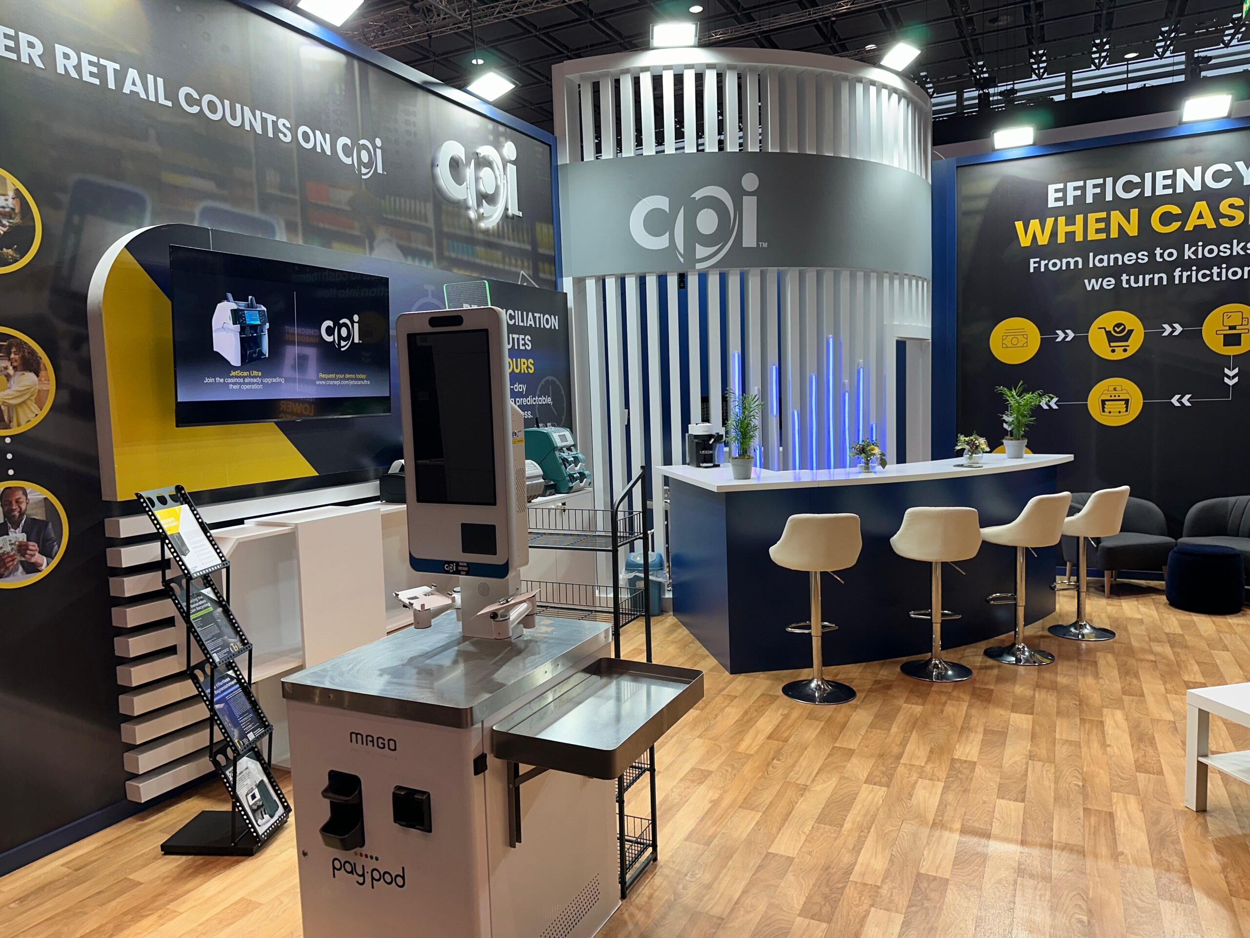 EuroShop representa el máximo nivel de exigencia en el retail global. Para CPI, el desafío consistió en integrar hardware crítico de gestión de pagos en una arquitectura efímera premium sin sacrificar la estética limpia. Nuestra respuesta fue «convertir lo difícil en fácil» mediante una ejecución técnica impecable. Diseñamos una estructura central circular retroiluminada que no solo atrajo el tráfico en el pabellón de Düsseldorf, sino que funcionó como un laboratorio operativo. Gracias a nuestra fabricación propia, ocultamos toda la complejidad del cableado, permitiendo demostraciones en vivo sin interrupciones. Con la gestión integral 360 de iKonic360, el cliente delegó toda la presión logística y el montaje internacional para centrarse exclusivamente en sus objetivos comerciales.